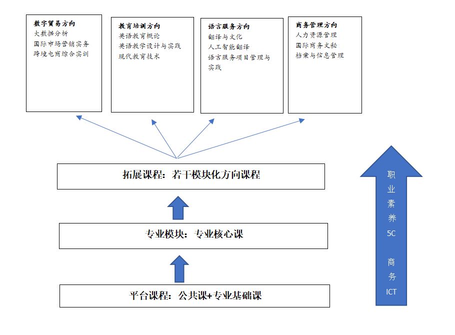 在人才培养方面,专业致力于培养熟悉国际贸易和跨境电商等相关行业,了解商务翻译、行政助理等岗位的理论知识于业务流程,具备办公室行政、客服等一线工作所需技能的复合式、创新型、高技能人才。根据中国大学生在线提供的数据,本专业毕业生主要从事海外销售、海运操作、行政管理、电话客服、前台接待、文秘、商务现场翻译、商务助理、单证操作员、英语教师、人力资源专员等岗位。