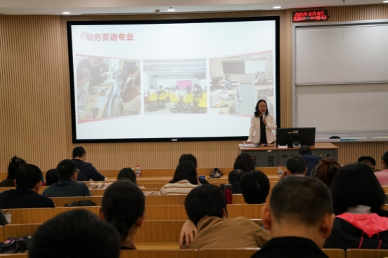 在专题教研活动环节,跨境电商专业教师高小雯围绕双语教学进行反思,主张推动双语教学升级,通过课程设计优化、国际留学生教学活动,培养学生英语实时沟通能力,增加课堂英语应用场景。商务英语专业教师陈娟娟汇报《新媒体运营与推广》同行评议情况,分享教师成长建议,思考职业教育“外语+”向“+外语”转型。副院长周月容作总结发言,汇报本学期已开展的多元教学活动,点出授课语言、出勤率、毕业资格、学业预警等教学痛点,明确以实践课程为抓手,从6个“有机结合”维度优化教学实践;同时部署APEC服务项目、2026年学校质量工程申报,主张将“有根有魂有效”的双语融合课堂列为重点工作首位。