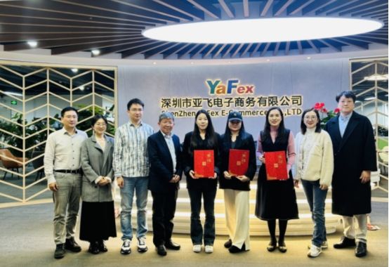 4月1日下午,为深化校企合作、促进产教融合,商务外语学院与深圳市亚飞电子商务有限公司在深圳龙岗区天安云谷二期联合举行实践教学基地挂牌仪式暨座谈交流会。商务外语学院副院长(主持工作)刘建珠、国际商务专业主任楼洁、跨境电商专业主任邓灵昭及部分专业骨干教师出席活动。亚飞公司首席人才官郭晓娟、全国招聘负责人胡琳、校招负责人王双喆热情接待并全程参与。