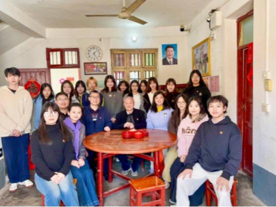 沿着习近平总书记2019年的考察足迹,师生们走进梓山镇潭头村,实地感受乡村振兴的蓬勃气象。在硒博馆、富硒蔬菜产业园,大家亲眼看到科技兴农的扎实成效;在与镇村干部、村民的交流中,深切体会到党建引领下潭头村从普通村庄迈向振兴样板的奋斗历程。在红军烈士后代、退伍军人孙观发家中,老人动情回忆习近平总书记来访时的温暖场景,并寄语师生“珍惜时代、奋发学习,早日成长为国家栋梁之才”。这份真挚的嘱托深深打动在场每一个人,也更加坚定了大家将个人理想融入国家发展的信念。立足今天,师生们对“绿水青山就是金山银山”的发展理念有了更深的理解,也对党建引领乡村振兴的实践路径有了更强的认同。大家表示,要将所见所感转化为奋进动力,以实际行动为新时代贡献青春力量。