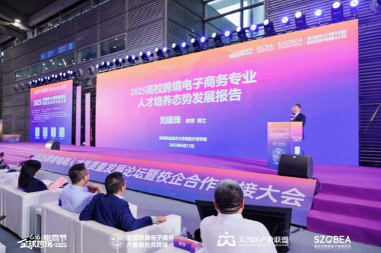 会上,刘建珠代表商外学院与深跨协联合发布《2025高校跨境电子商务专业人才培养态势发展报告》。该报告结合跨境电商行业最新数据与前沿风向,融汇跨境电商本科办学理念,阐述了跨境电商行业的人才供需情况,提出了涵盖中职、高职与本科多层次跨境电商人才培养方案的核心要素与优化建议。