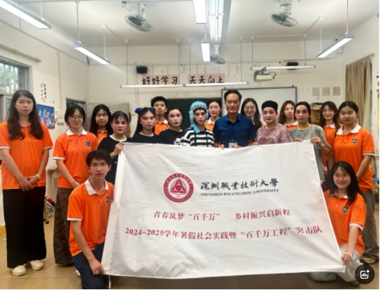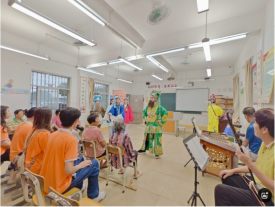 7月10日,实践队员参加“2025年惠州市戏曲进乡村活动(惠东县专场)”,跟随稔山女子白字剧团下乡,为当地村民带去了一场精彩纷呈的戏曲盛宴。在演出过程中,队员们负责现场秩序维护、观众引导等工作。同时队员们通过记录演出细节、访谈演员,形成了关于戏曲传承困境(如受众老龄化、资金不足)的初步报告。