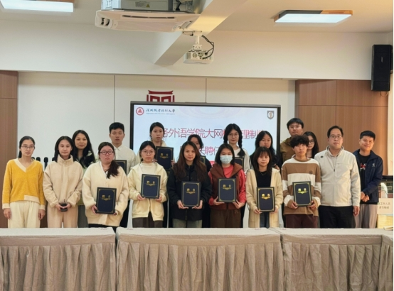聘任仪式中杨潘升介绍了商外学院“学工大网格”的工作机制以及人员构成,表示在座的学生骨干将要肩负班级网格长的工作职能,鼓励大家充分运用“学工大网格”的工作机制,秉持“学生永远是学院的主体”的工作理念,将反诈与安全工作根植于基层网格,达成宣传教育实效,在未来的工作中将“学工大网格”拓展成宣传网格、校友网格、资源网格。