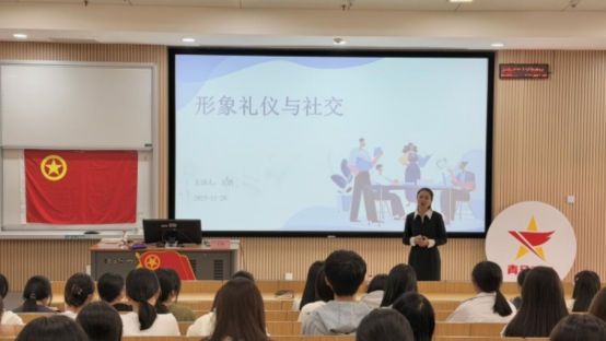 11月26日,商外学院成功举办“形象礼仪与交际”专题培训。本次活动特邀深圳市言语传媒有限公司负责人王俏担任主讲,旨在提升学生的职业素养和商务交往能力,学院第八期“青马工程”百余名学员参加了此次培训。为增强培训效果,课程设置了多个互动环节。在职业仪态环节,王俏重点讲解了着装规范、仪容整理、姿态管理等实用技巧。她特别指出:“职业形象的关键在于专业性与得体性的统一,既要体现个人特色,也要符合场合要求。”学员们通过情景模拟、角色扮演等方式,在实践中掌握交际礼仪的要领。现场气氛活跃,学员们积极参与,展现了商外学子良好的精神风貌。(商外学院 罗增幸)