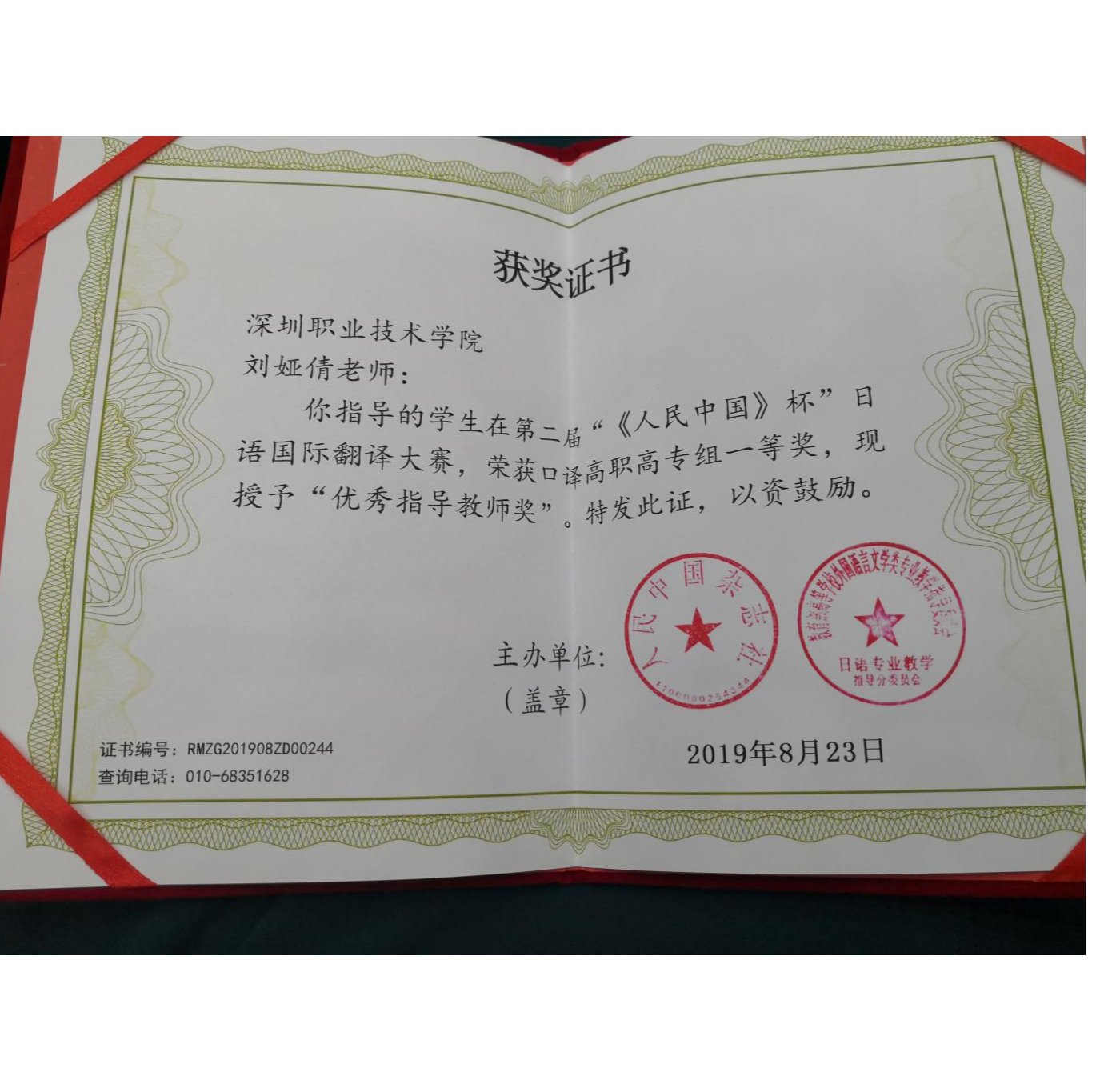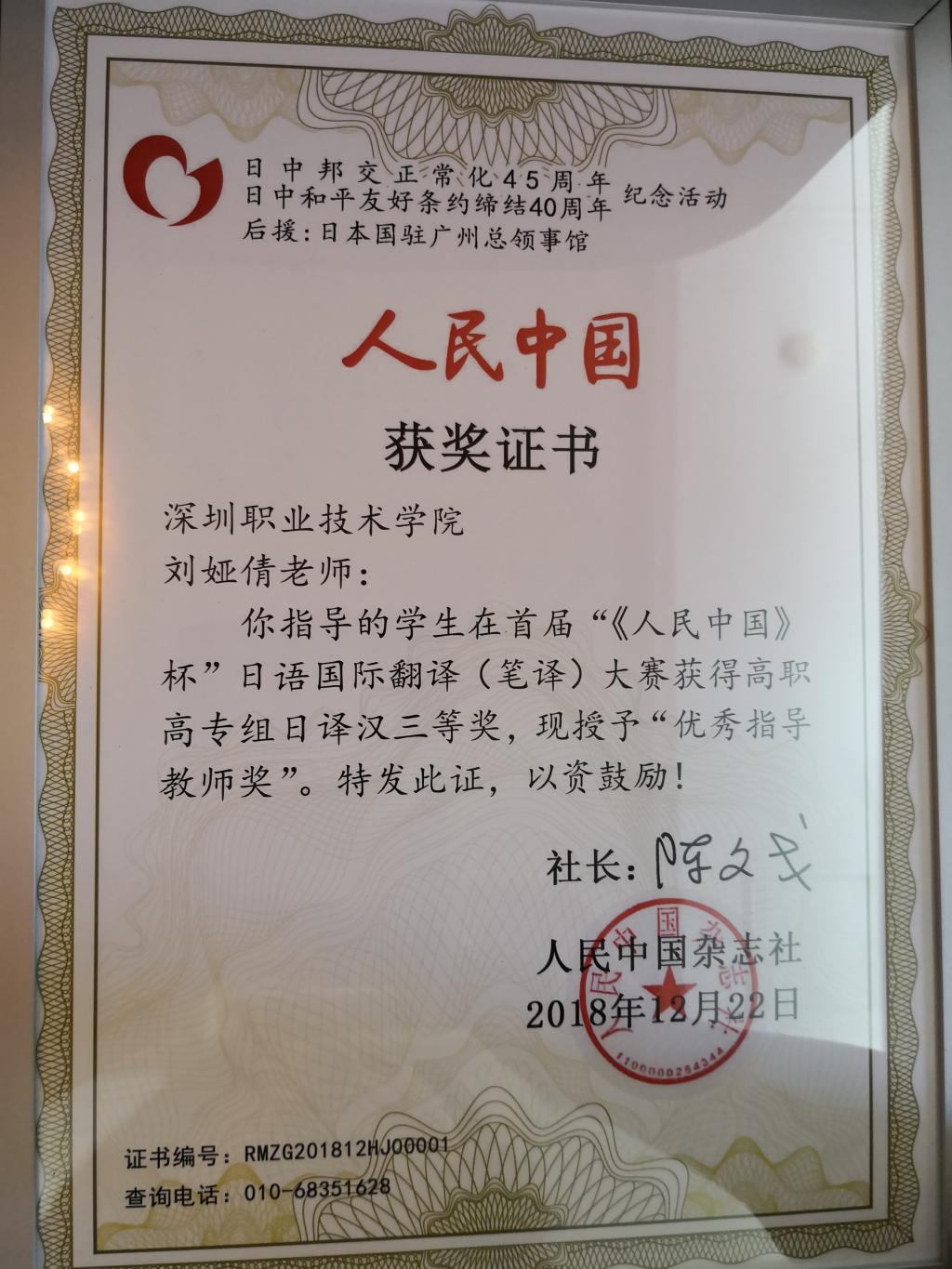 日语专业教师获奖