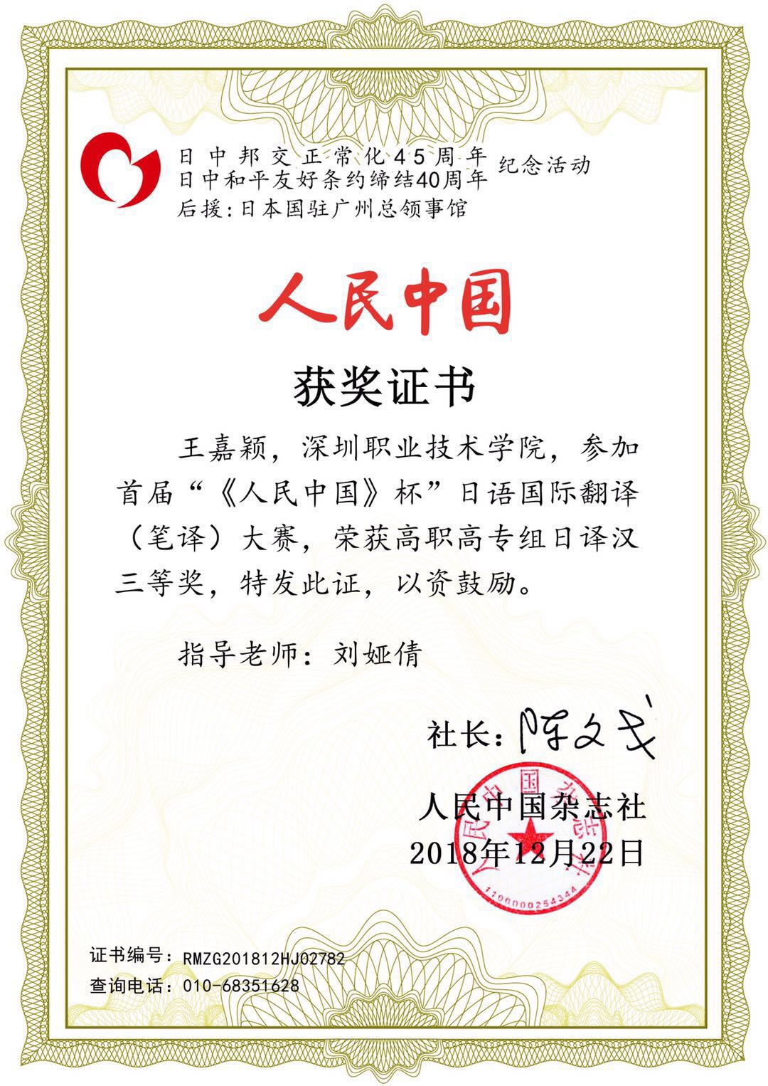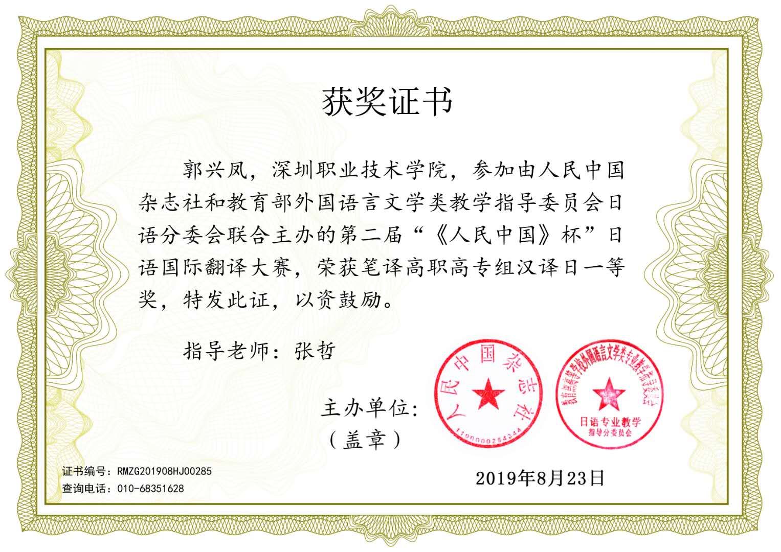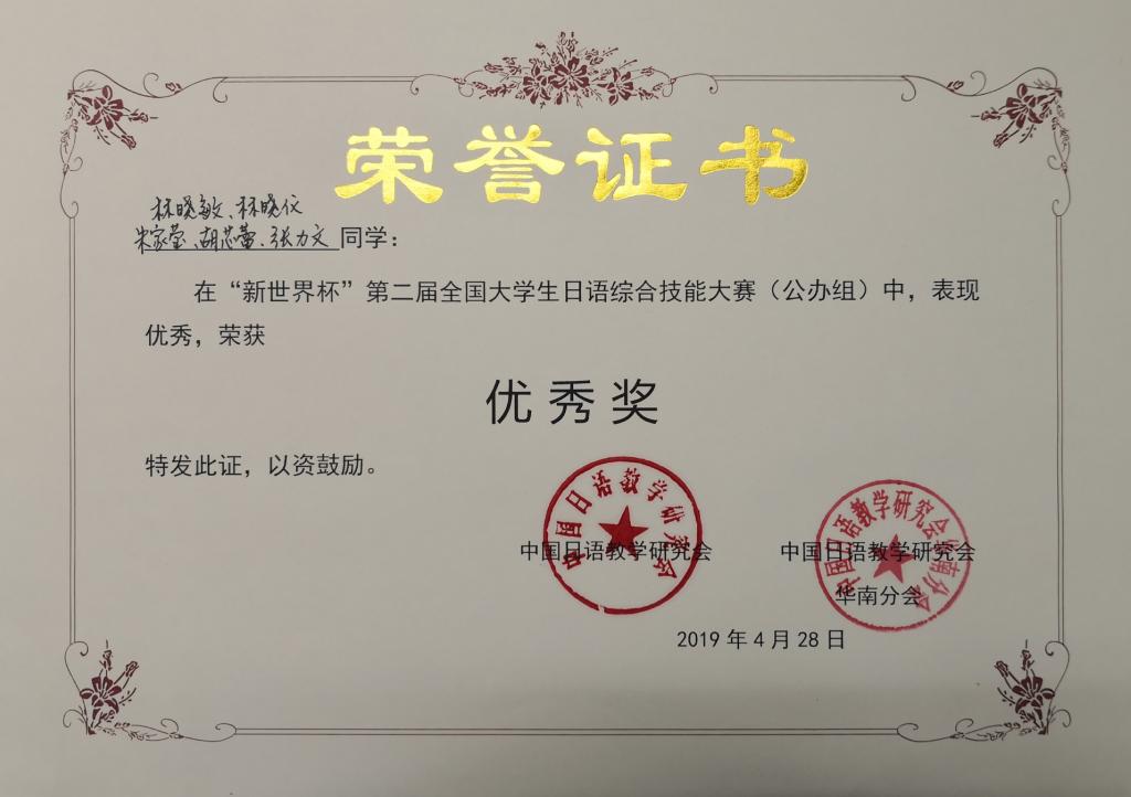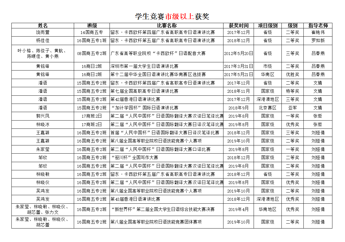 商务日语专业学生获奖