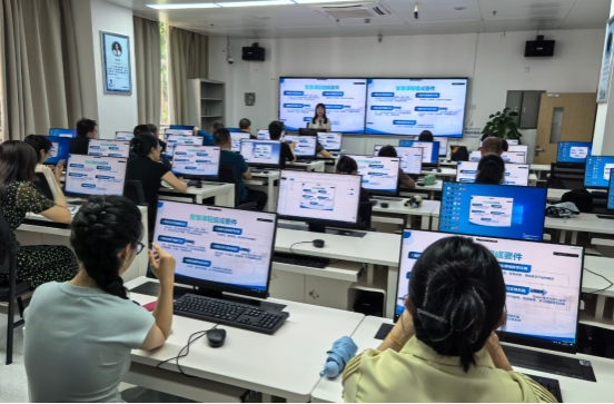 为深化数字化转型,推动AI技术与教育教学融合,学校在“深职i学习”教学平台上线了AI助教与AI助学工具。6月10日下午,商外学院组织了第一批20余名教师在留仙洞园区德业楼机房参加了该平台AI课程建设培训。