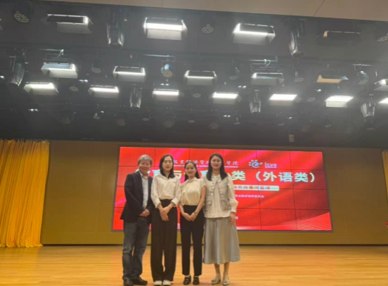 本次活动由商务外语学院副院长(主持工作)刘建珠带队,综管办主任谢娅琦、公外部骨干教师雷婕和谢旦旦共同参与。在示范课程展示环节,雷婕、谢旦旦作为教学团队代表登台,围绕“中国智慧,科技出海”这一主题,进行了精彩的说课和示范课堂展示。团队结合当前国际传播背景,深入挖掘课程中的思政元素,展示了如何将中国科技发展成就与国家软实力建设有机融入外语教学全过程,体现了课程思政与专业教学协同育人的创新实践。